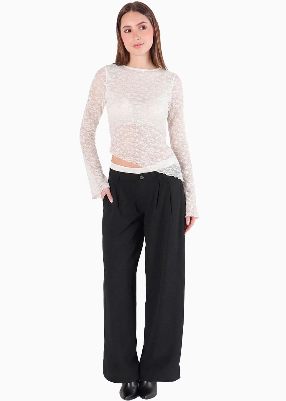Blusa en encaje con manga campana y ruedo asimetrico - SEGOVIA.VAINILLA