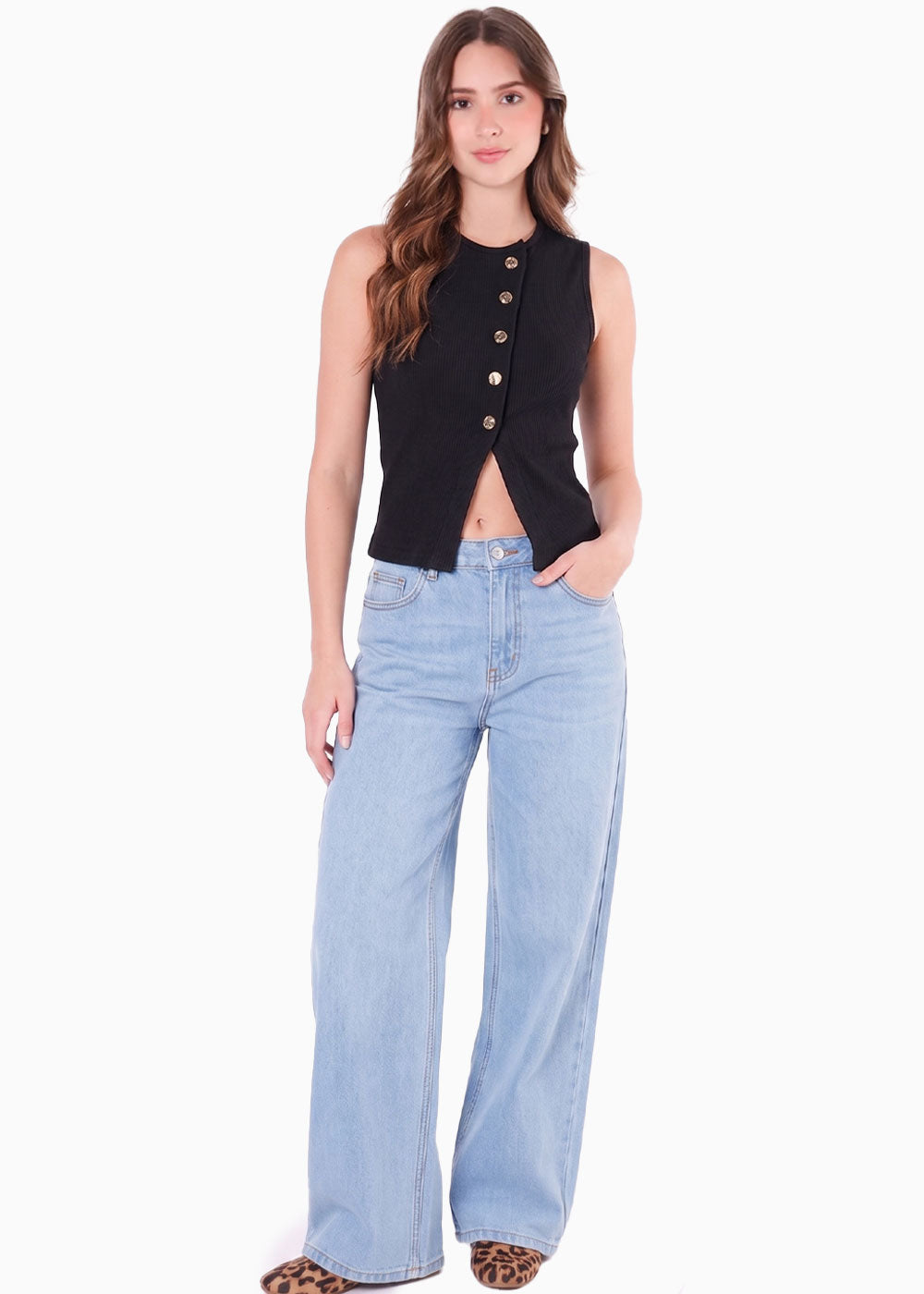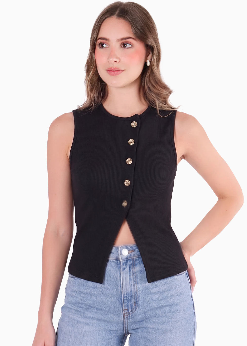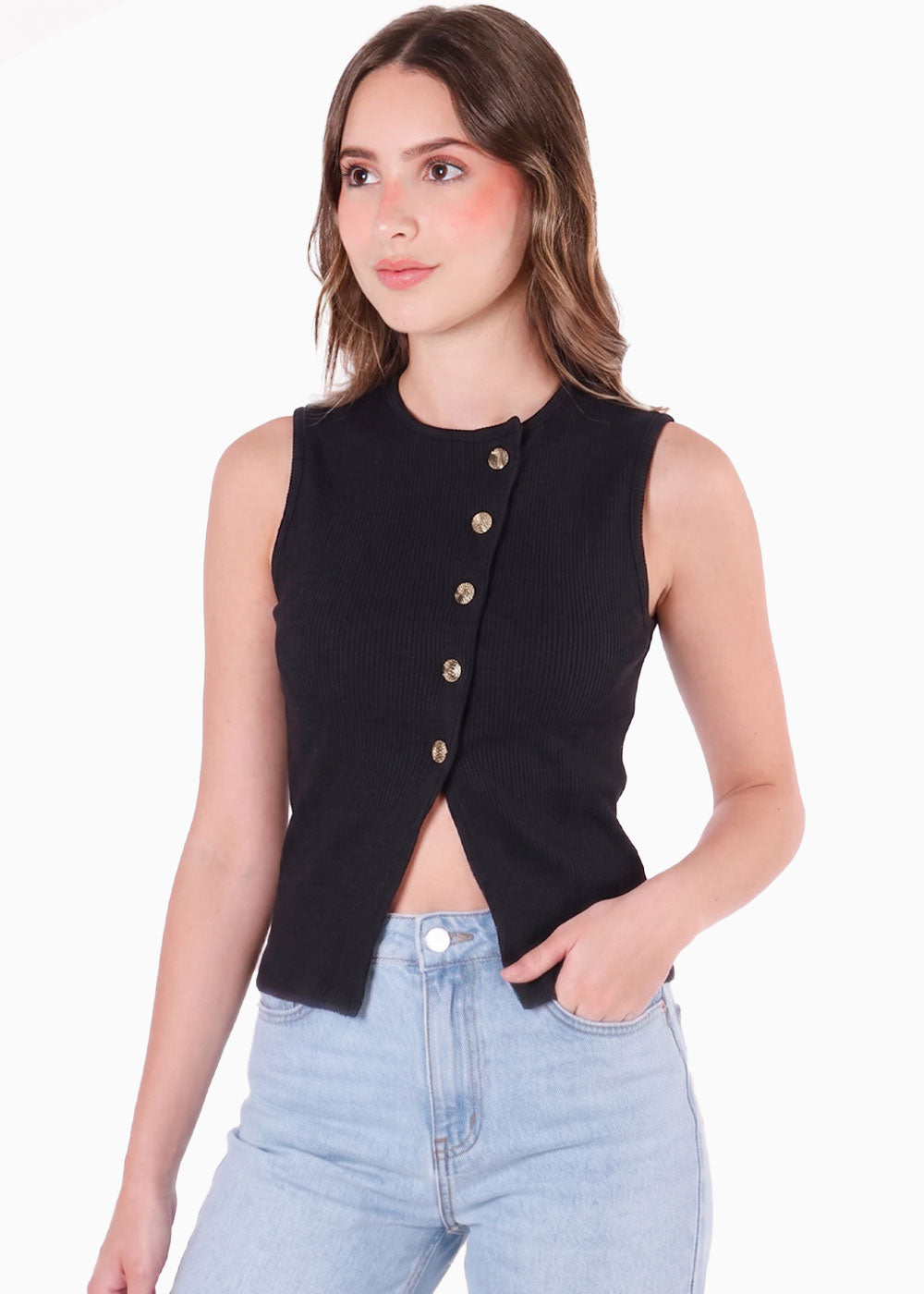 Chaleco con perilla cruzada y botones dorados - VILLAREAL.NEGRO