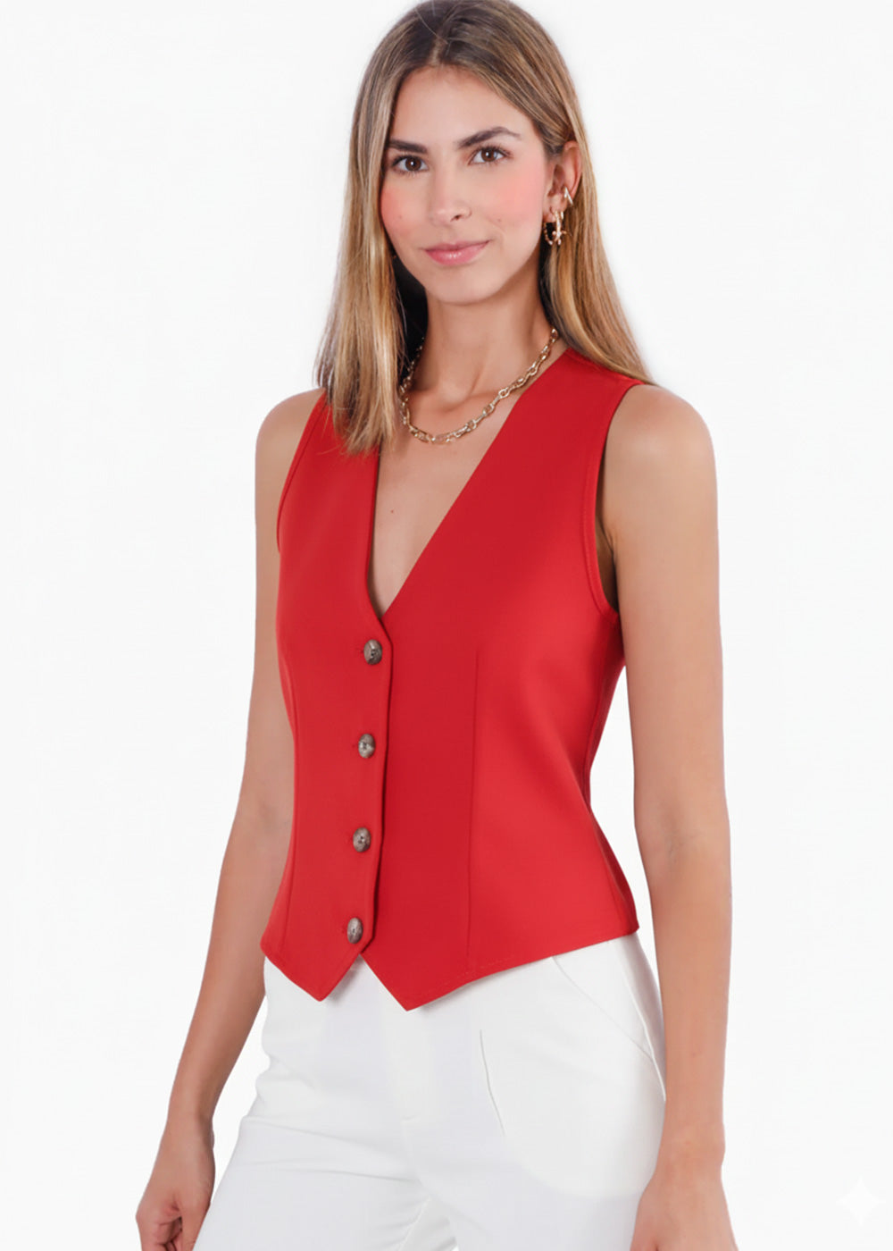 Chaleco tipo sastre con botones - SHARINA.ROJO