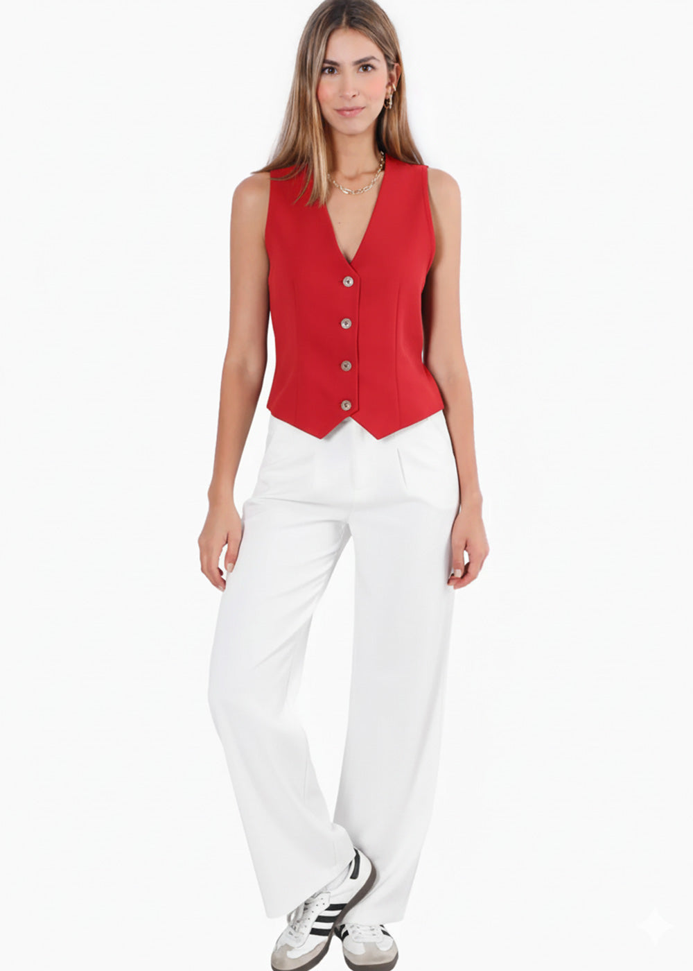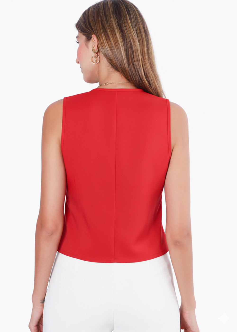 - Chaleco tipo sastre color rojo con botones.