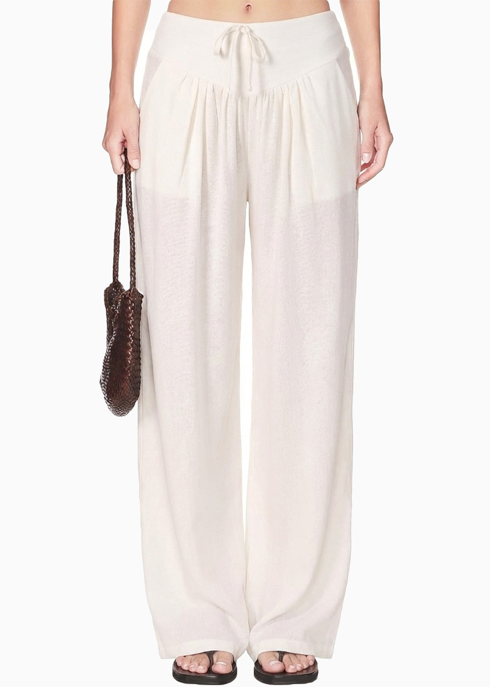 - Pantalón en tela tipo lino color marfil.