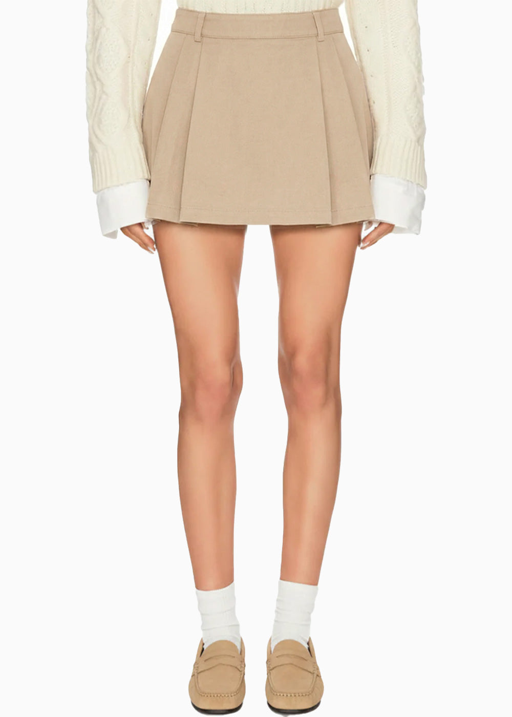 - Falda corta color camel con prenses.