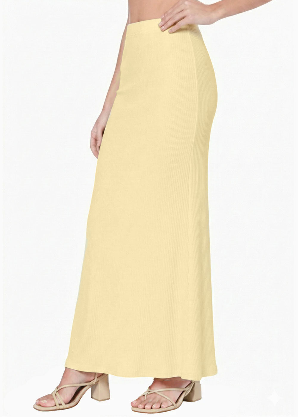 - Material: 100% algodón.- Falda color amarillo larga.- Manuela, la modelo usa talla XS y mide 168 cm.