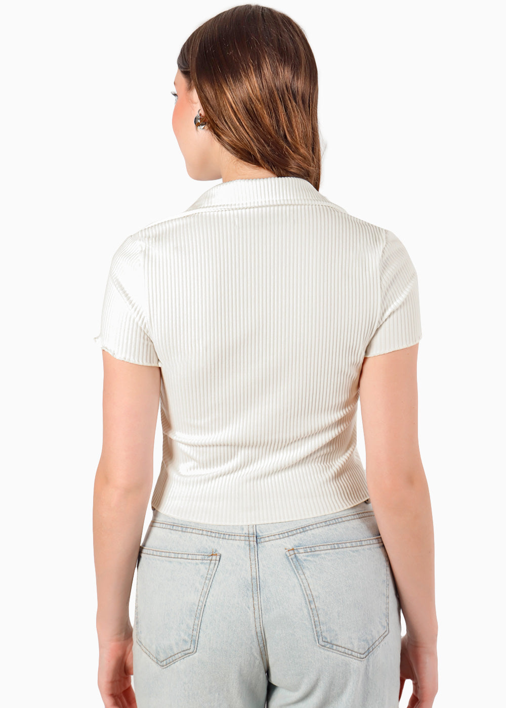 - Blusa manga corta polo con cuello y perilla color marfil.