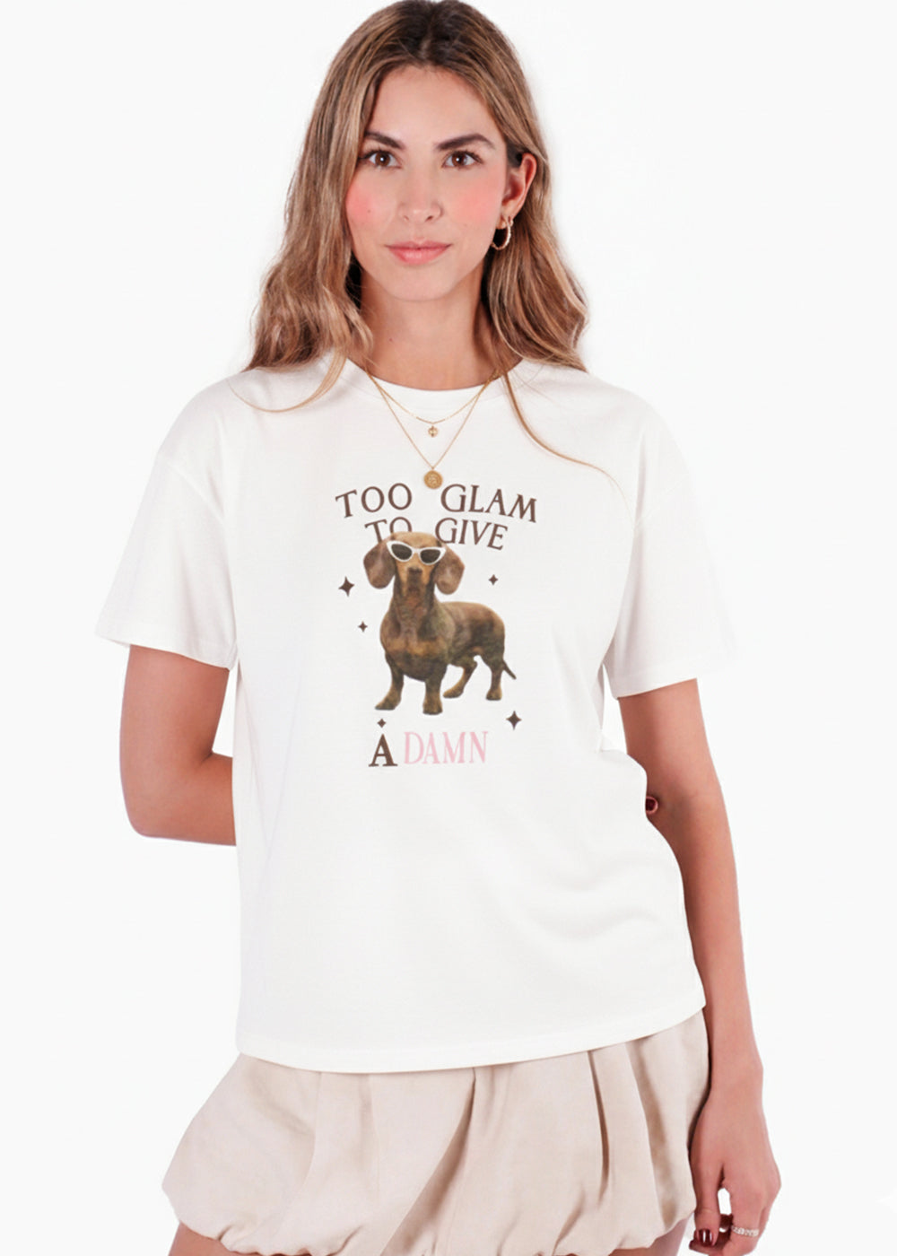 Camiseta con estampado perro "TOO GLAM TO GIVE A DAMN" - BURDEOS